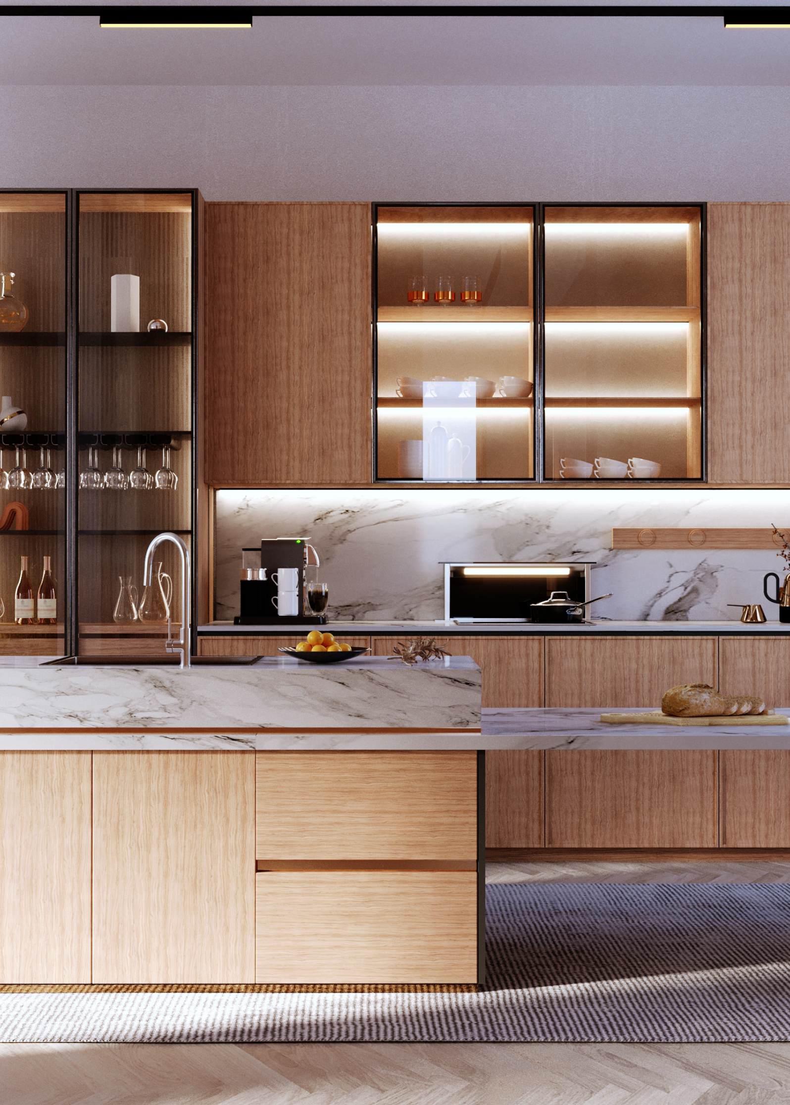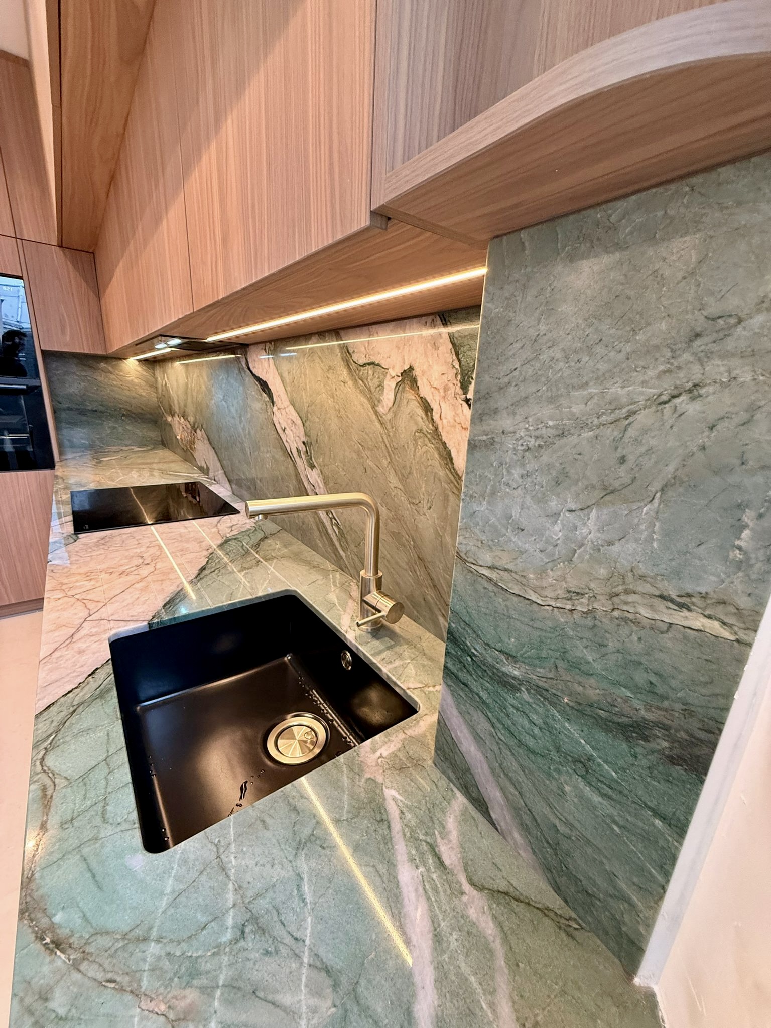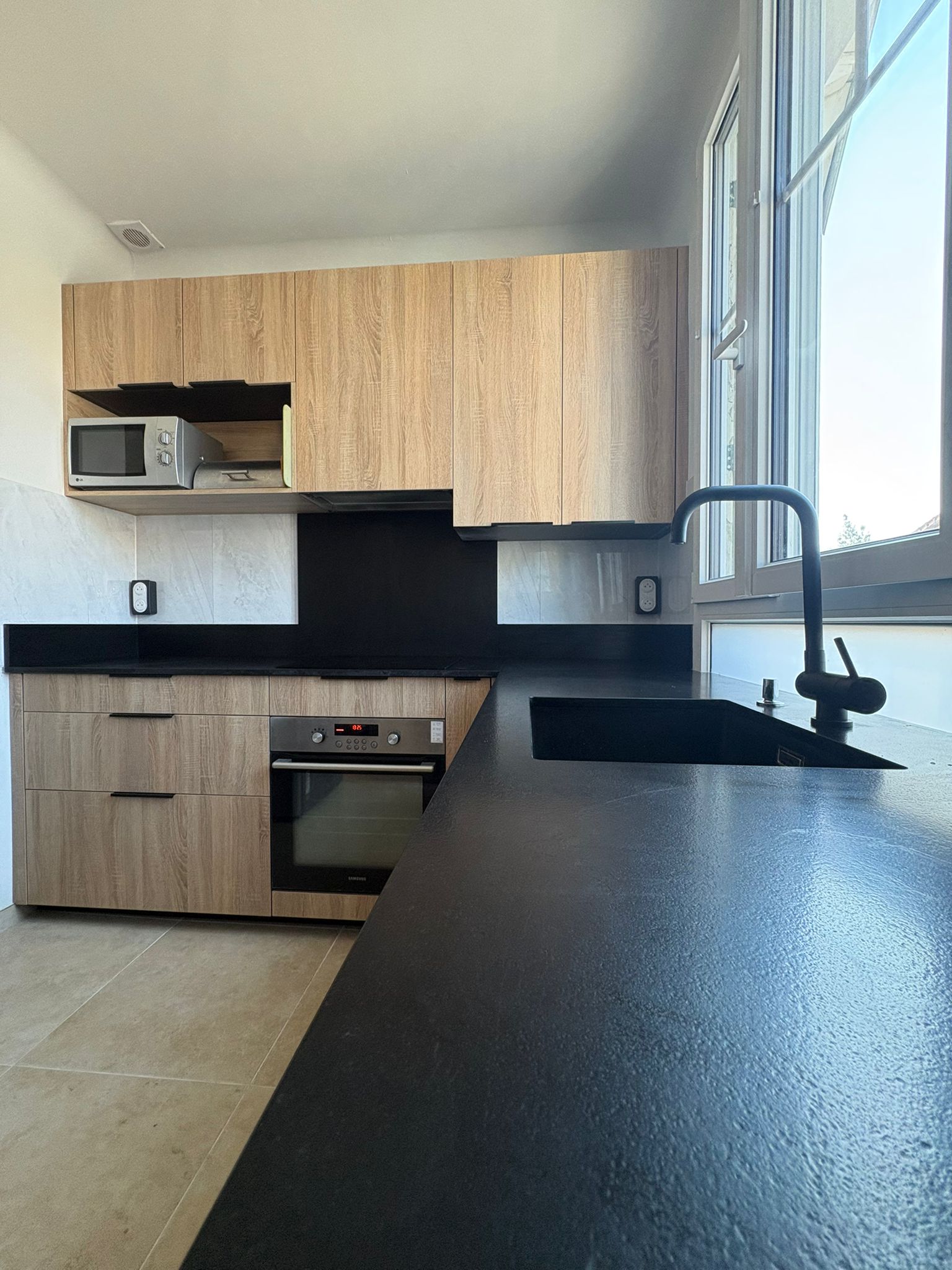 Lisse et brillante, c’est la finition classique des plans de travail en granit, avec des reflets.