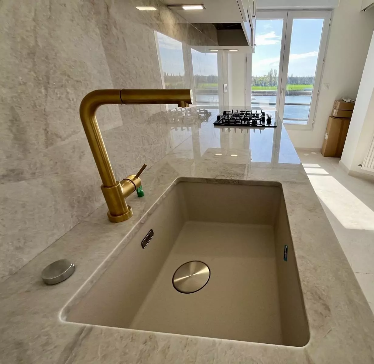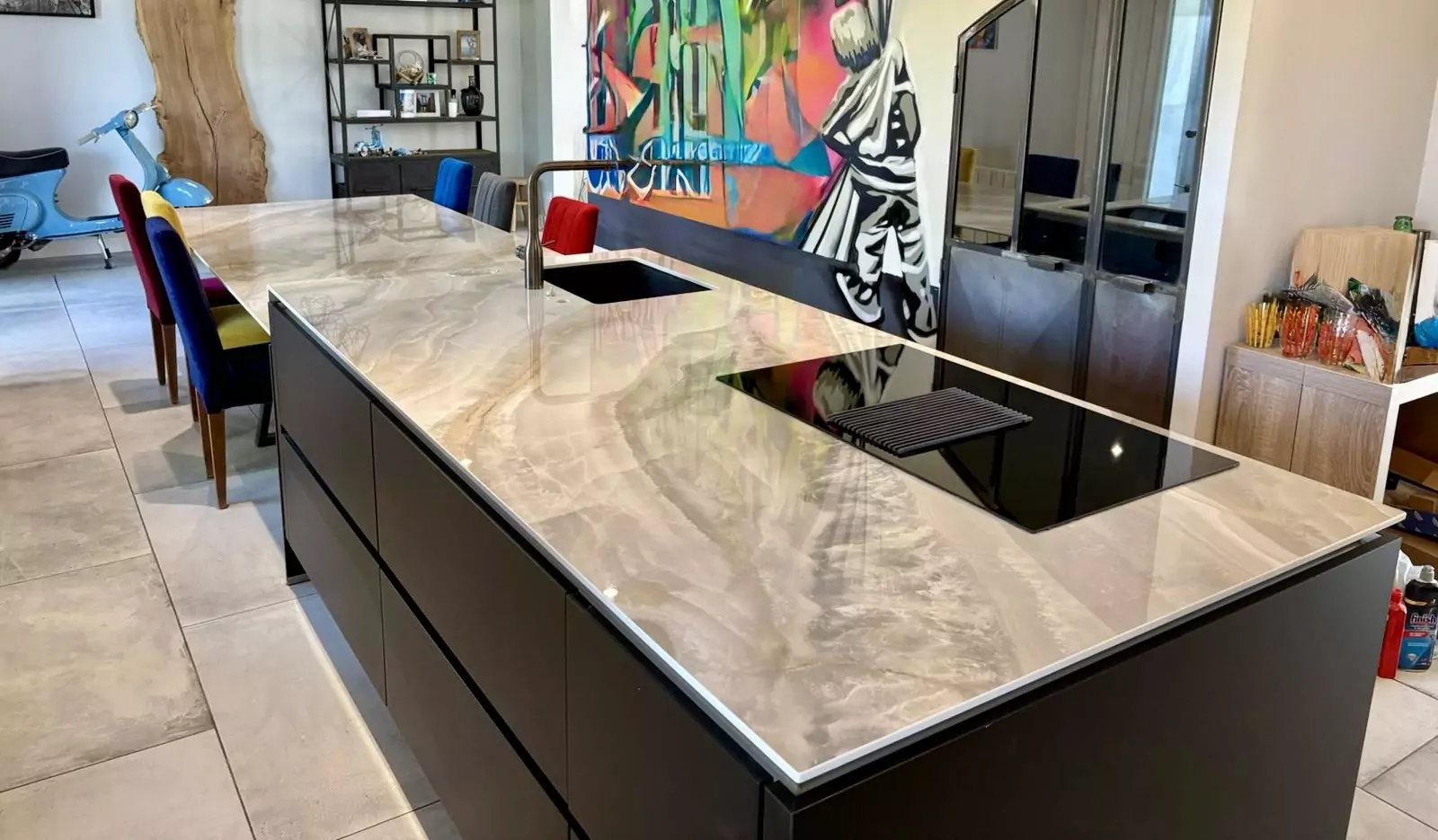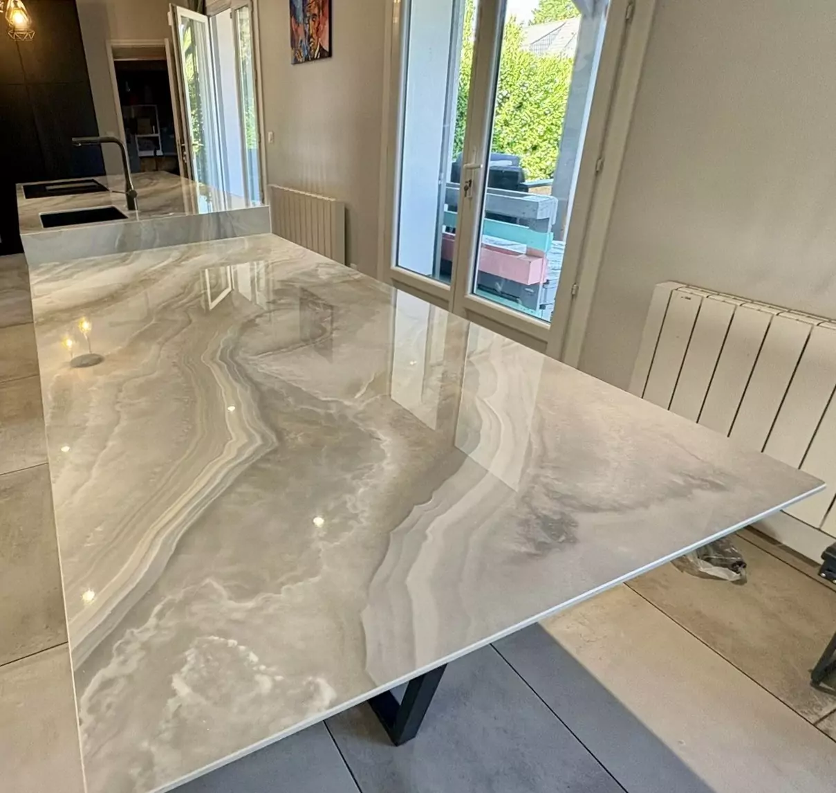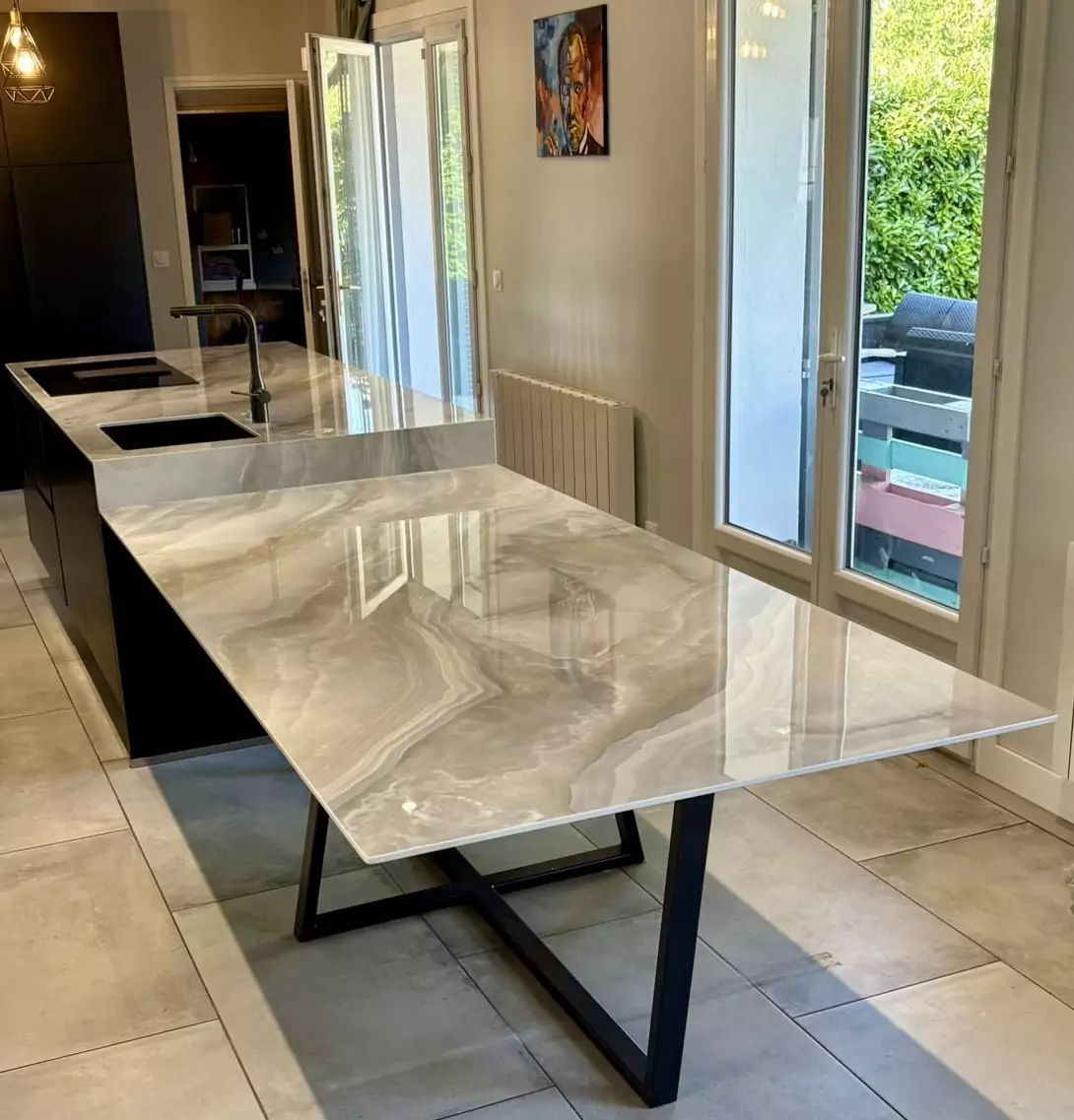 Table et plan de travail en Laminam Onice Grigio