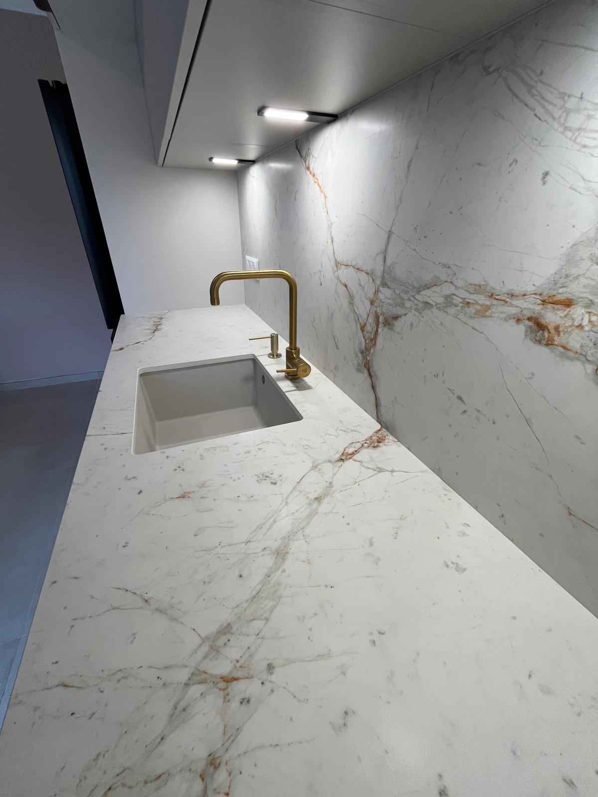 Cuisine en Céramique Laminam Calacatta Michel Angelo
